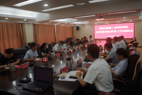 在孝昌县政府会议室举行的乡村振兴工作座谈会上,孝昌县县委书记胡斌对我校在乡村振兴工作上的帮扶表示感谢,介绍了孝昌县基本情况、乡村振兴工作思路,希望我校完善村振兴工作规划,在教师和校长队伍培训、人才输入、基层治理、消费帮扶上给予支持。