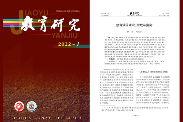 本网讯(通讯员 石晶 刘菲)我校教育科学学院张炜教授在教育学科顶级刊物(权威)《教育研究》2022年第1期发表了题为《教育强国建设:指数与指向》的学术论文。张炜教授为第一作者,湖北第二师范学院为第一署名单位,全文共14页,约1.8万字。(编辑 张震)