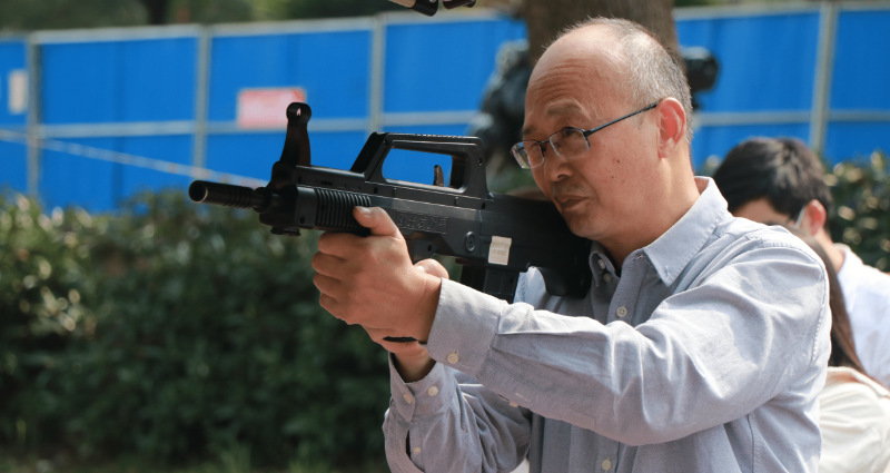 2020级中国语言文学类专业学生尤山水在模拟射击的过程中取得9.7环的好成绩。“今年没有开展军训,但是我们还是能够接触到军用器械,学到了基本的射击知识。”打靶归来,每名学生都按捺不住内心的激动与他人分享自己的射击感受。“退伍回来之后,我对部队仍然有着深深的情怀。打靶模拟演练非常有意义,我就赶紧参加了。”2018级土木工程专业学生王智说。