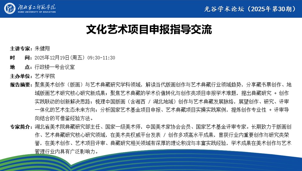 【光谷学术论坛预告】文化艺术项目申报指导交流-小鸟体育