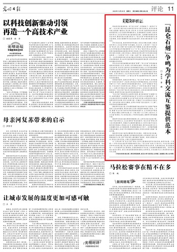 本网讯(通讯员 叶道艳)10月29日,《光明日报》第11版“文化评析”栏目刊登了我校马克思主义学院教师杨永华与武汉大学马克思主义学院教师李楠合著评论文章《“昆仑石刻”争鸣为学科交流互鉴提供范本》。